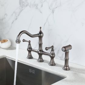 8 inch Centerset Bridge Kitchen Faucet with Brass Side Sprayer 2 Handles 4 Holes Antique Classic Heritage Deck-Mount Kitchen Sink Faucet